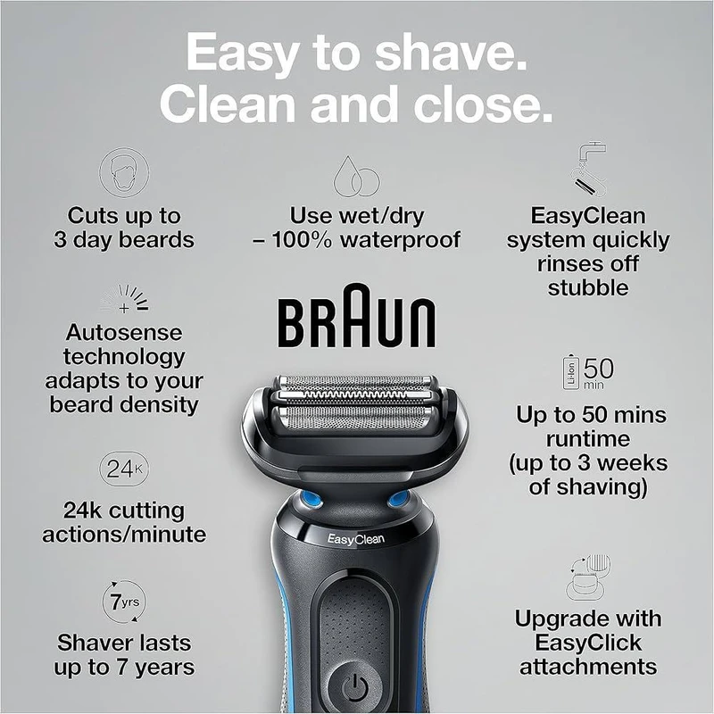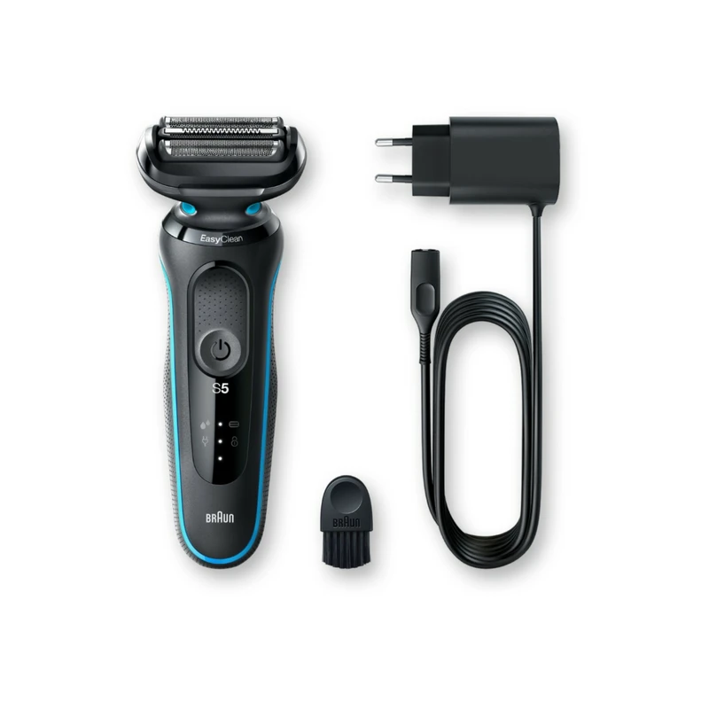 امروزه با پیشرفت تکنولوژیهای مربوط به ماشینهای اصلاح، شاهد رقابت تنگاتنگ شرکتها برای ارائهی ویژگیهای جدید این دستگاهها هستیم که البته این ویژگیها در بسیاری از آنها مشترکاند. قابلیت انعطاف سر ماشین اصلاح، یکی از این ویژگیهاست که هر شرکتی در این زمینه، طراحی مخصوص به خود دارد. شرکت «براون» (Braun) با تولید ماشینهای اصلاح سری 5 خود علاوهبر قابلیت حرکت تیغهها، قابلیت حرکت کلی سر ماشین اصلاح را نیز فراهم آورده تا حرکت ماشین اصلاح روی صورت با انحناهای صورت هماهنگ شده و اصلاح نقاطی مانند زیر گردن راحتتر انجام شود. سر ماشین اصلاح دارای دو تیغهی فویلی در اطراف و یک تریمر در بین آنهاست. سریهای فویلی، موهای کوتاهتر را قطع کرده و تریمر میانی، موهای بلندتر را قطع میکند. فلز سریهای فویلی سوراخهایی مانند لانهی زنبور دارد که باعث میشود موها از نزدیکترین نقطه به پوست قطع شوند و اصلاحی صاف و بدون تهریش انجام گیرد. تریمر میانی نیز دارای طراحی خاصی است که حتی موهای خوابیدهی زیر گردن را بلند و قطع میکند. 50M1000S کاملا ضدآب است و میتوان از آن برای اصلاح در حالت خشک یا مرطوب، با فوم یا ژل اصلاح و حتی زیر دوش استفاده کرد. برای اصلاح خط ریش و گردن یا مرتبکردن ریش و سبیل میتوان از خطزن متصل به دستگاه استفاده کرد که در پشت آن قرار دارد. 50M1000S به باتری لیتیومیونی قابلشارژ مجهز است که با یک ساعت شارژ به مدت 45 دقیقه شارژدهی میکند. ازآنجاییکه این ماشین اصلاح در حالت متصل به پریز برق کار نمیکند، در صورت تمامشدن باتری میتوان با 5 دقیقه شارژ، انرژی لازم را برای یک اصلاح کامل در آن ذخیره کرد. برای محافظت از ماشین اصلاح حین مسافرت و جابهجایی، پوشش محافظ تیغهها و کیف نگهداری نیز همراه آن ارائه شده است. بهطورخلاصه 50M1000S دارای قابلیت حرکت سری و تیغهها، سری سهبخشی، خطزن متصل به دستگاه و منبع تغذیهی باتری قابلشارژ بوده و کاملا ضدآب است.