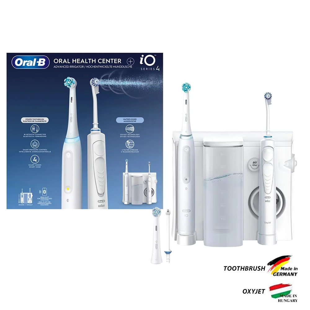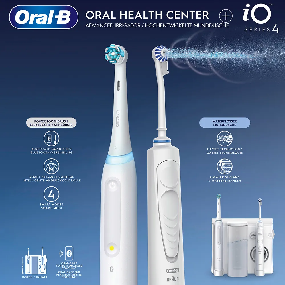 واتر جت و اکسی جت دو قلو با مسواک برقی IO 4 فناوری پیشرفته را با طراحی کاربرپسند ترکیب می کند تا یک تجربه مراقبت از دندان برتر را ارائه دهد. این سیستم یکپارچه شامل مسواک برقی، نخ دندان و سنسور فشار هوشمند است که تمیز کردن کامل و بهبود سلامت لثه را تضمین می کند.