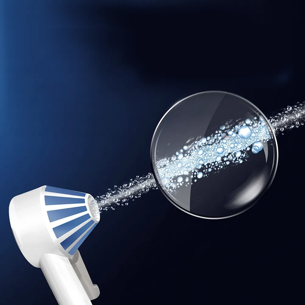 واتر جت و اکسی جت اورال بی همچنین شامل یک نخ دندان آبی است که یک جایگزین موثر برای نخ دندان سنتی است. این دستگاه از جریان ضربانی آب برای حذف پلاک ها و زباله ها از مناطق صعب العبور استفاده می کند و باعث سلامت لثه ها و تنفس تازه تر می شود. تنظیمات فشار قابل تنظیم فلوسر آب مطابق با اولویت ها و حساسیت های فردی است.